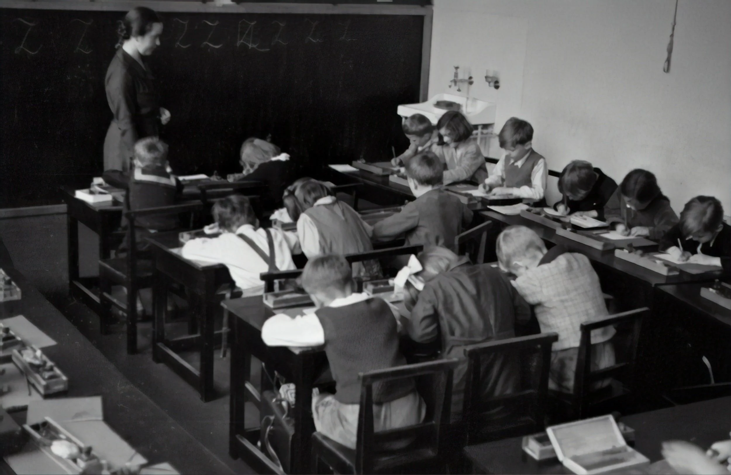 Scene 2. Teachers' In service. Veteran teacher MARK TYMONS (a bachelor). BARRETT and NOVAK sing "Destiny," a warning about making waves. In "B-E-A, Song and Dance," SUPT. MIDDLEPATH encourages PTA attendance.